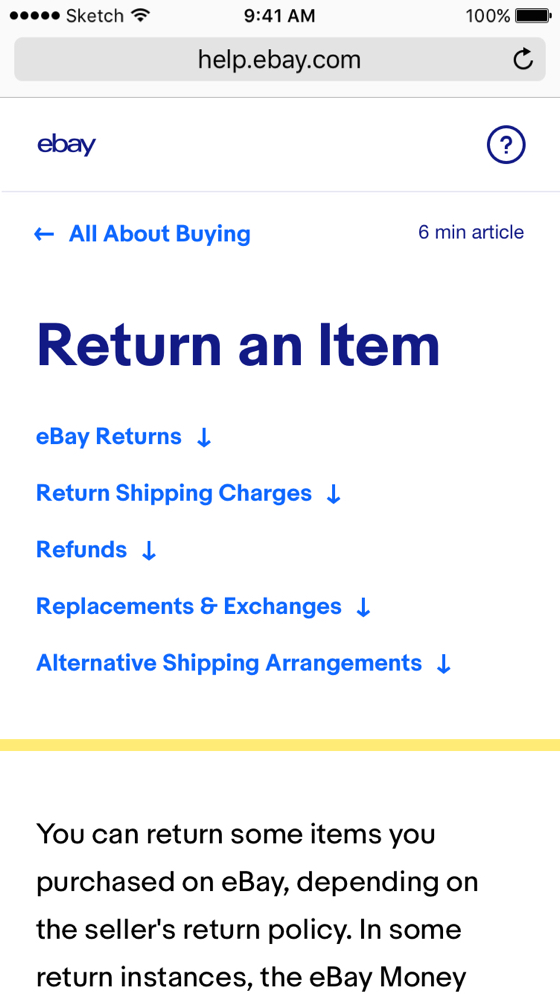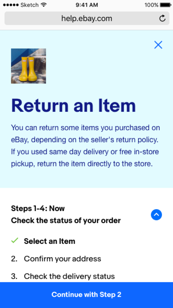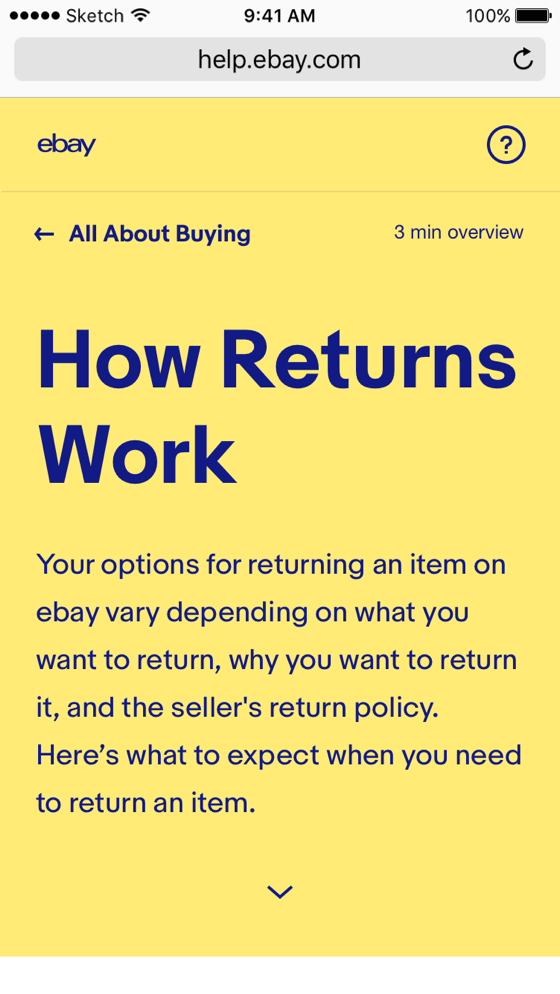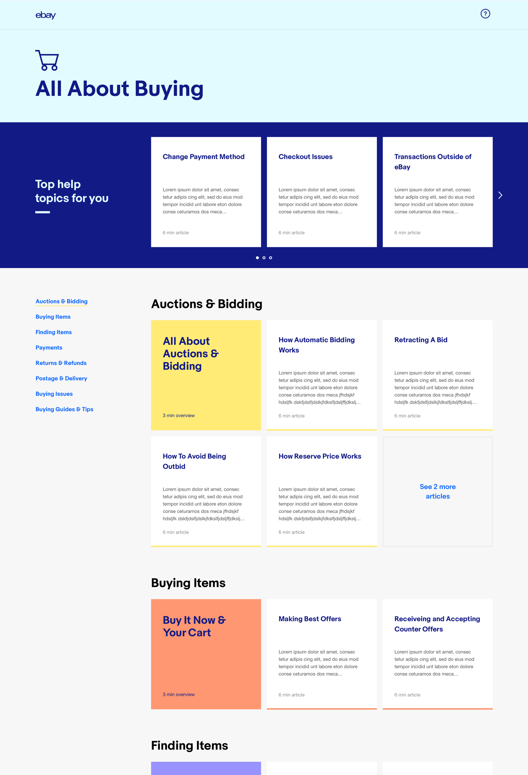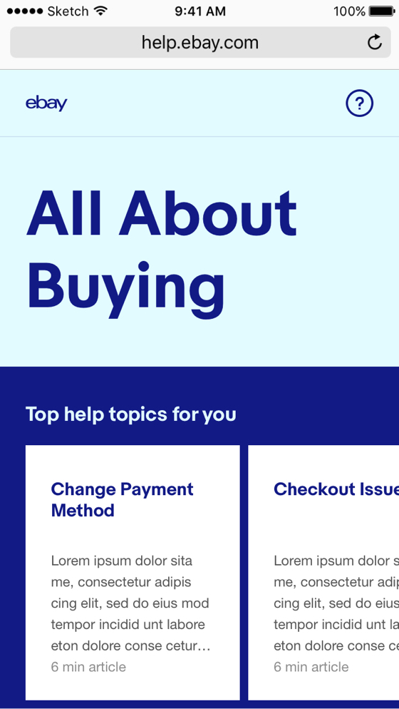 I worked on this project for four months, alongside four designers and three strategists, and was involved in every part of the process from ideation to execution. I participated heavily in concept development and user testing, created a system of modules to better communicate help information, and worked with eBay’s brand team to adapt their latest re-brand to it’s first full digital experience.
