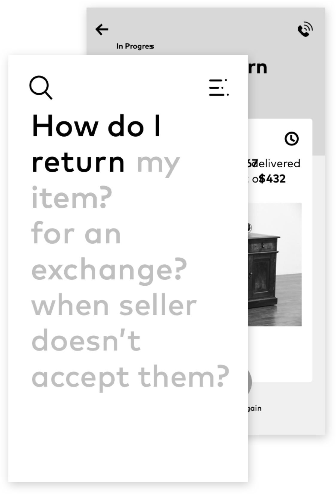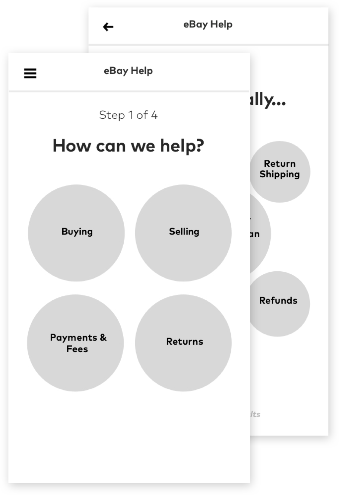 Our strategists held client workshops and researched eBay’s core demographics as well as their painpoints & challenges with the current system. They also dove deep into macro & micro trends, competitive analysis, customer service innovation in other industries, and customer service best practices. From that research, our team came up with four polarized customer service concepts to take into qualititve 1-on-1 user interviews.