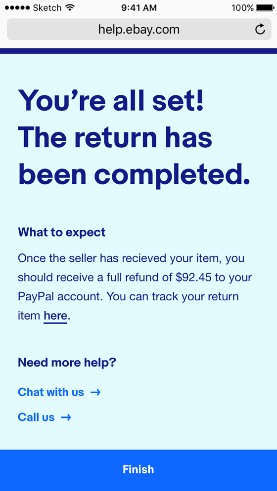 For the next round of testing, the clients felt it valuable to skin the prototypes, so I quickly (1.5 days) applied what I knew of eBay's new brand guidelines to the wireframes we had. This time, when users saw the prototypes they felt much more real.
