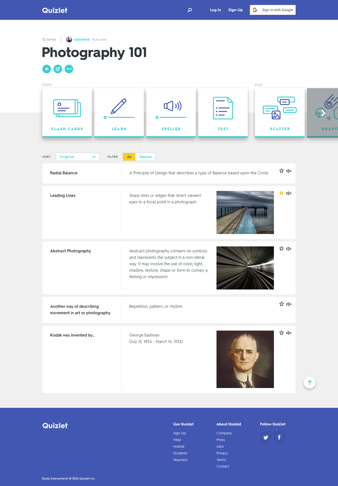 Two other designers exectued on the design choices made in the themeboarding round to create the Home Page and Set Page for Quizlet.com as well as an indepth styleguide that Quizlet’s in house team could use to create the rest of their digital tools.