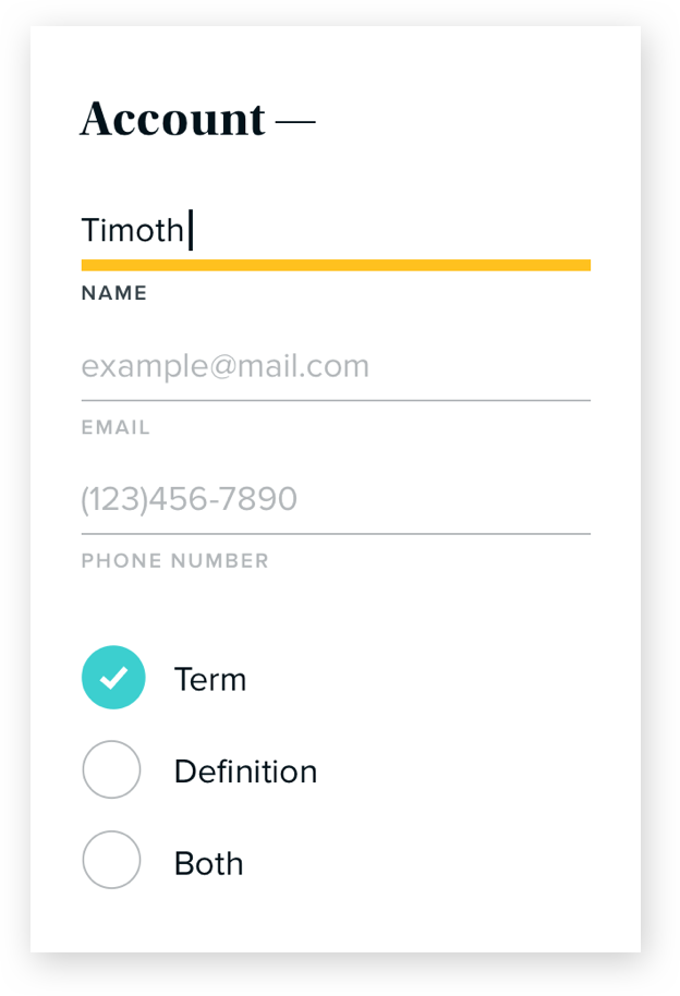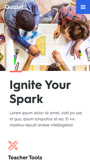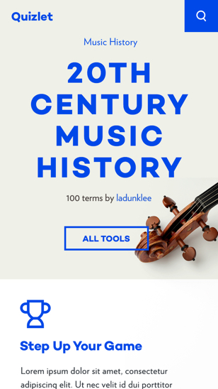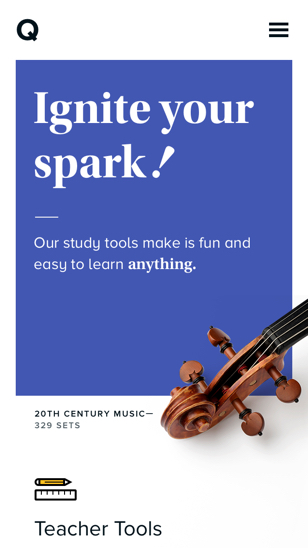 Quizlet responded well to elements with hard corners; rounded corners felt too youthful and soft.